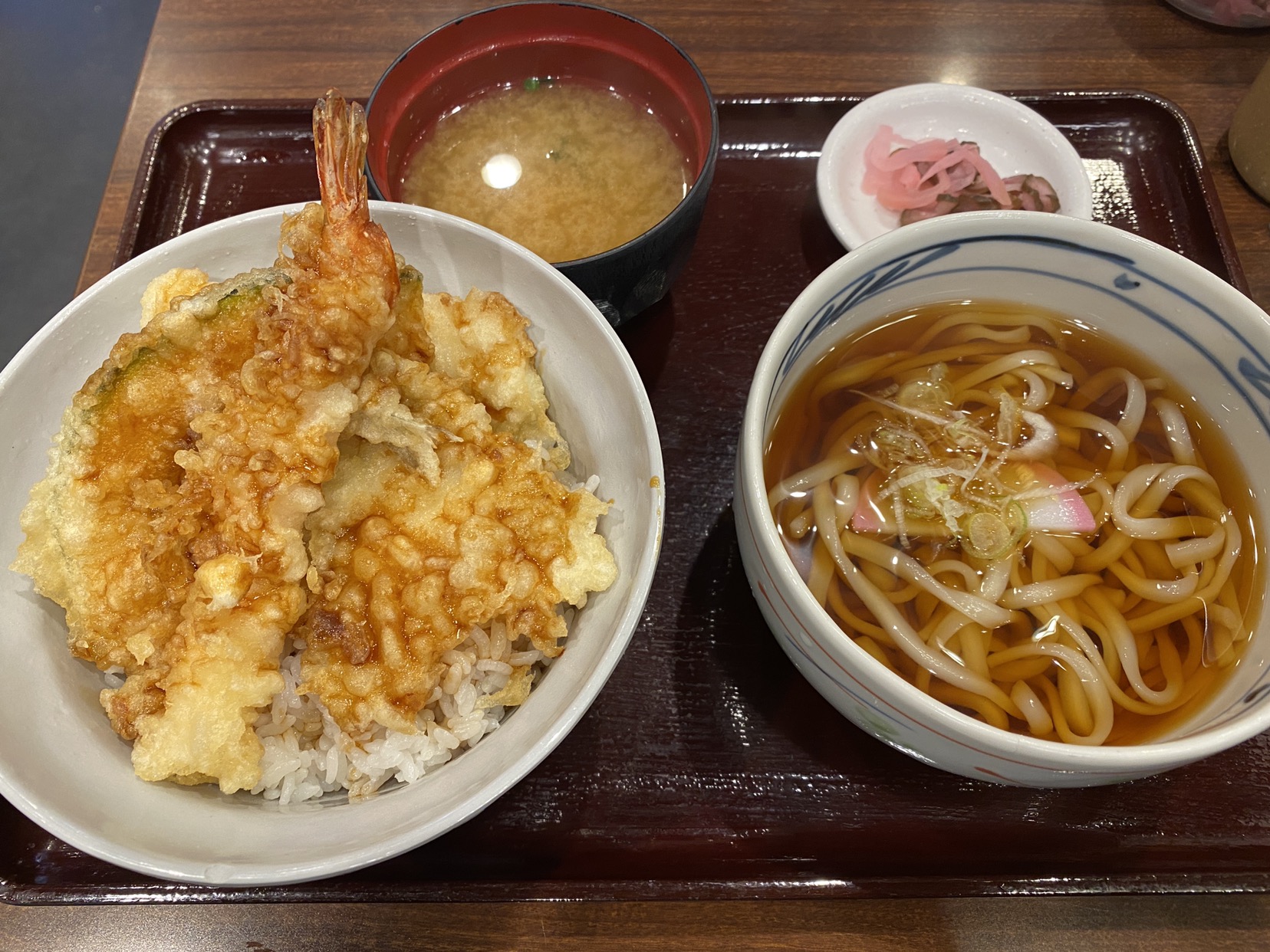 이 메뉴는 텐동 기본 + 따뜻한 우동 세트예요.