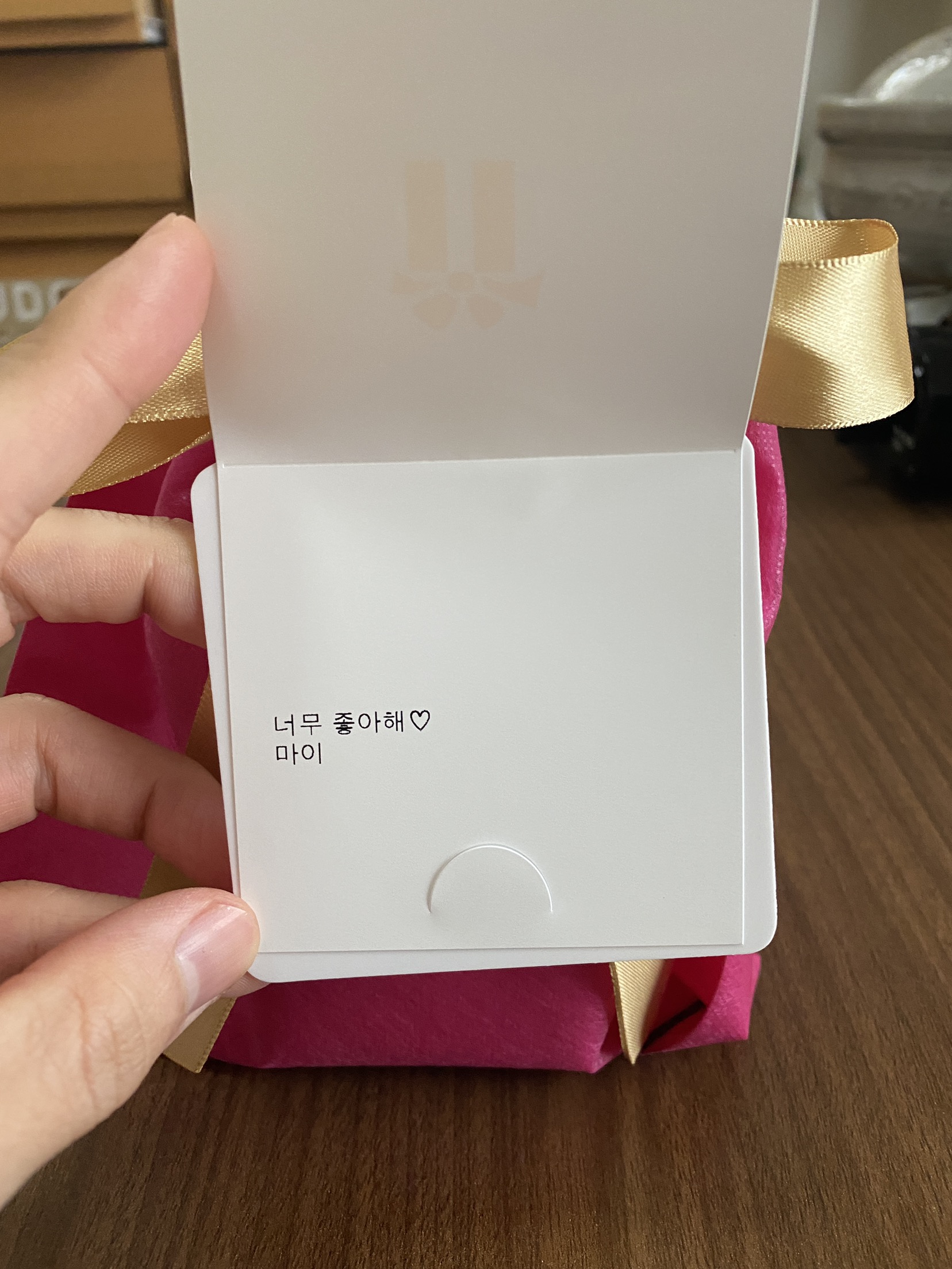 카드를 열어보니 [너무 좋아해🤍 마이]라고 되어있다.
