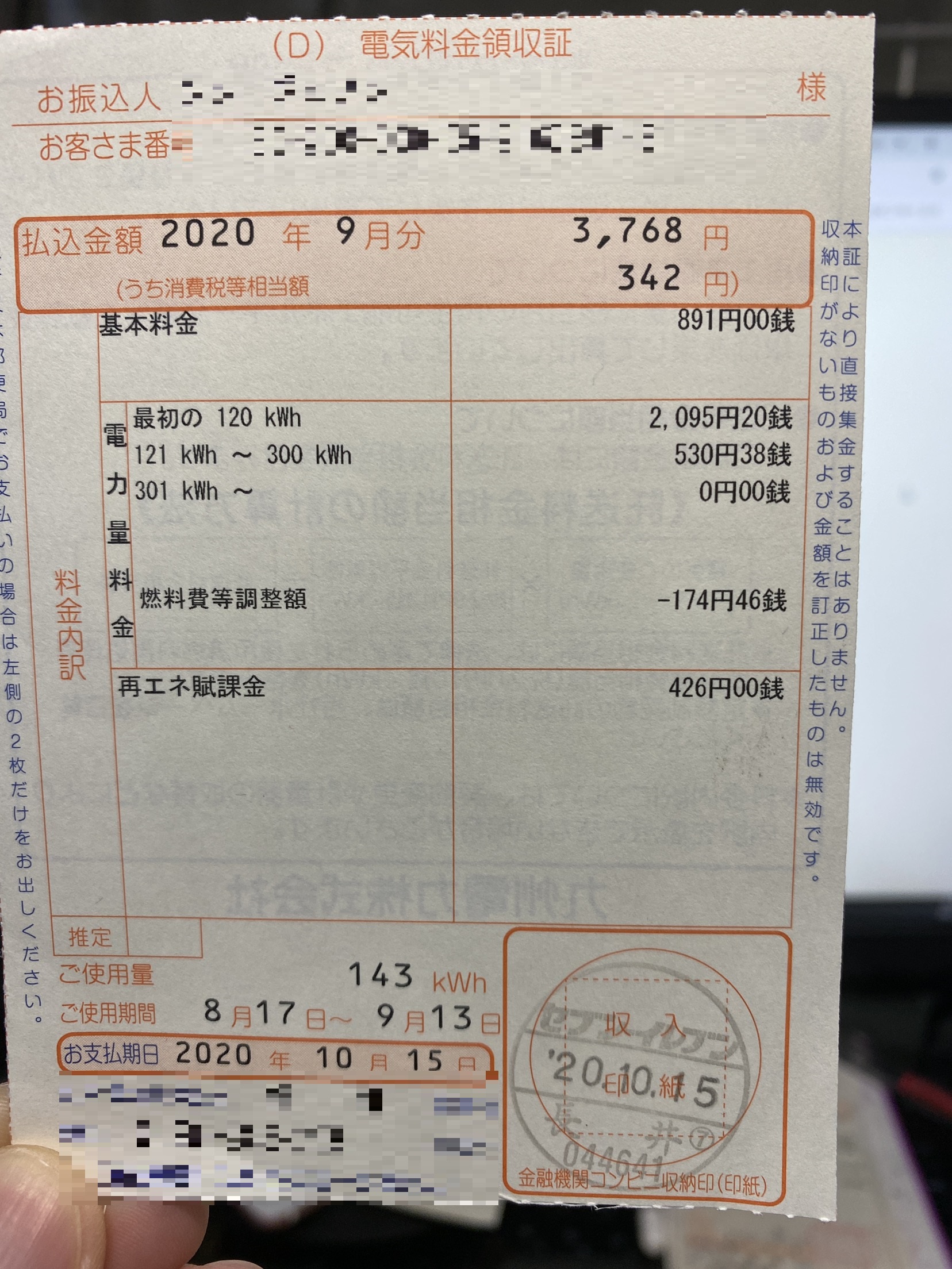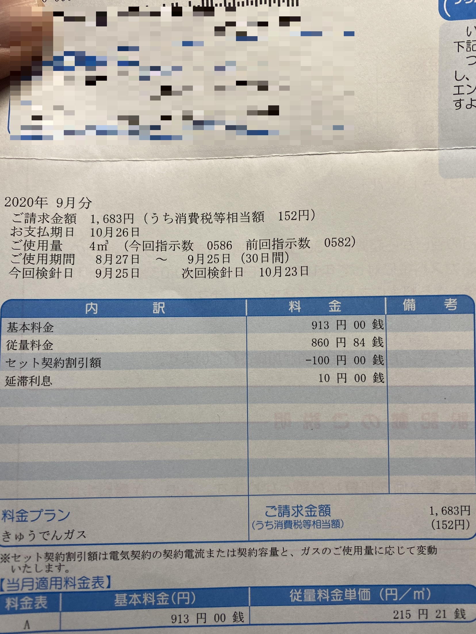2020년 9월 공과금 결산은 3,768엔 + 1,683엔 = 5,451엔이 나왔습니다. 지금 멘션이 도시가스에다가 전기와 가스가 결합이 가능하여 저렴한 편이라고 생각해요.