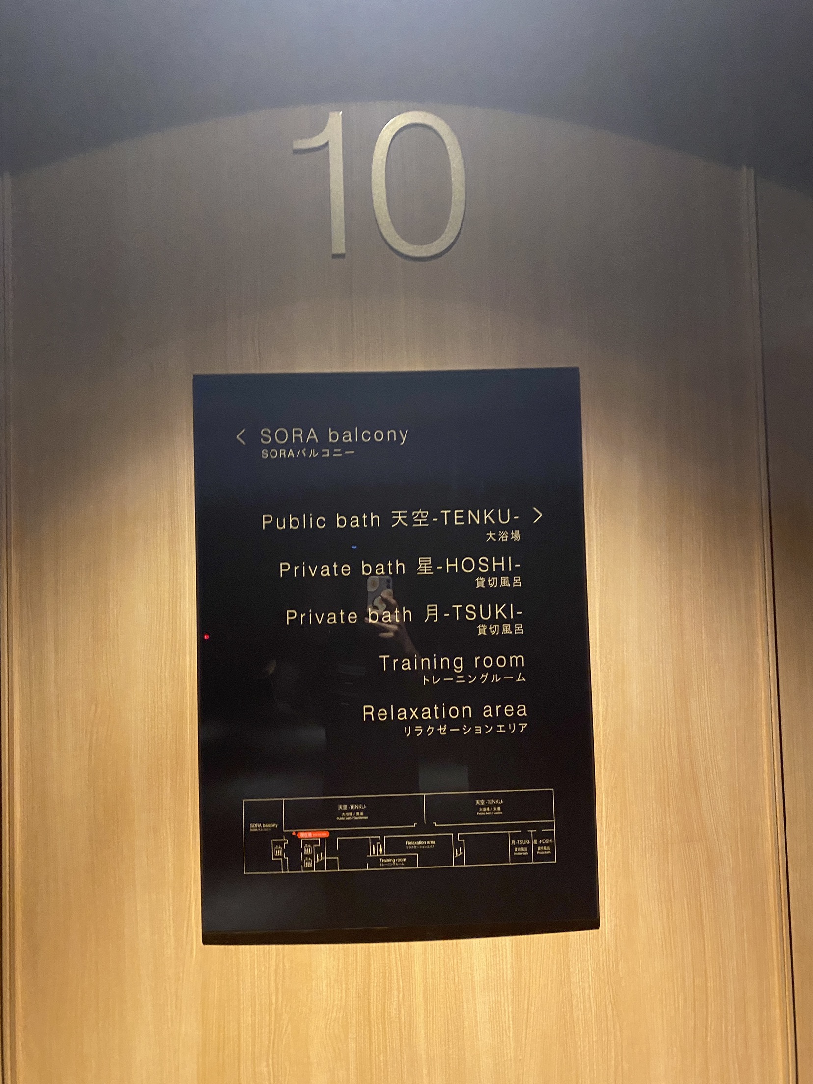 온천이나 편의시설은 모두 10층에 있어요. 남녀 온천과 짐(헬스장), 휴게실이 이곳에 있습니다.