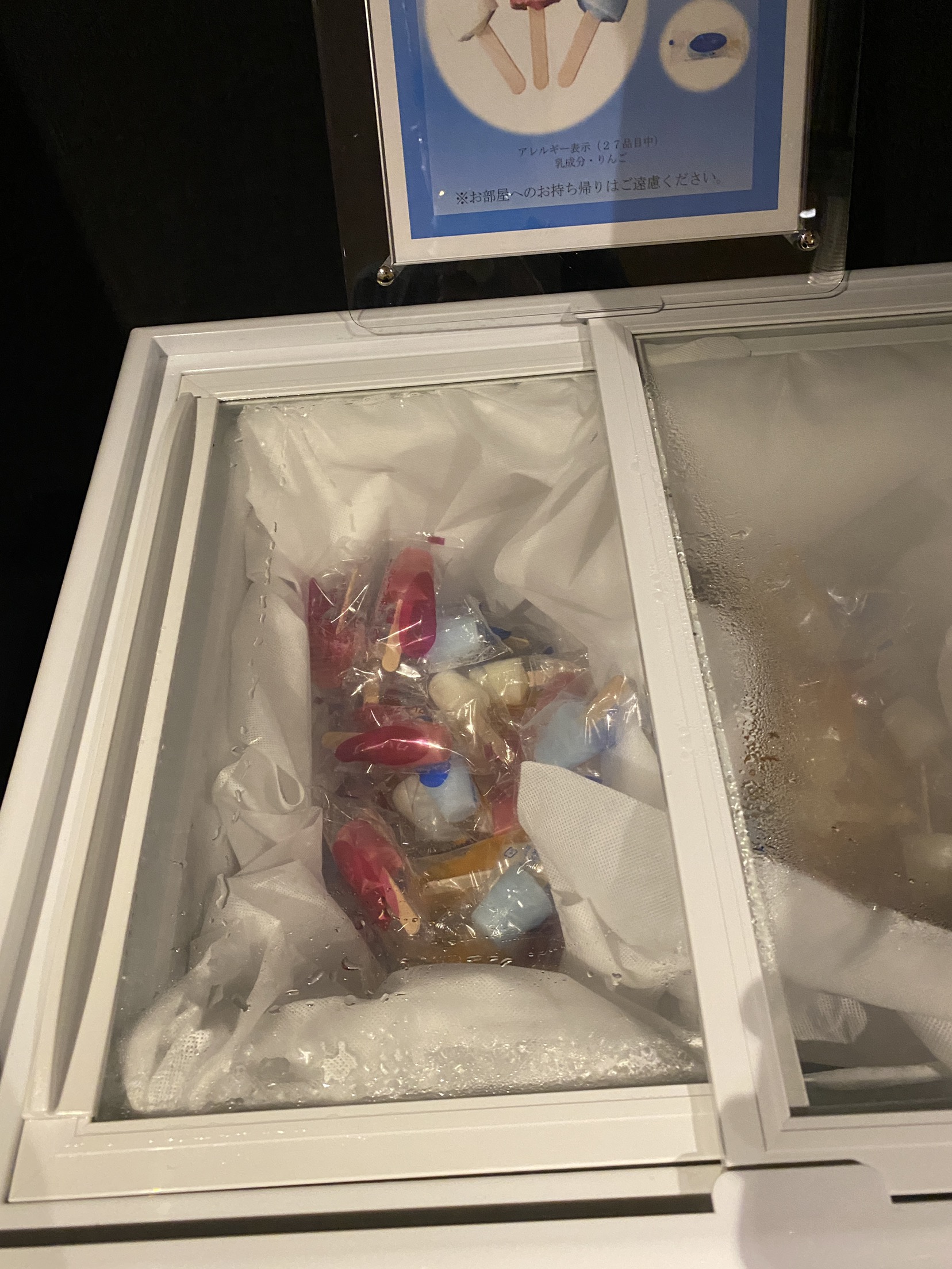 그 옆에는 아이스캔디가 구비되어 있습니다. ㅎㅎ 맛도 세 가지여서 자유롭게 이용 가능해요.