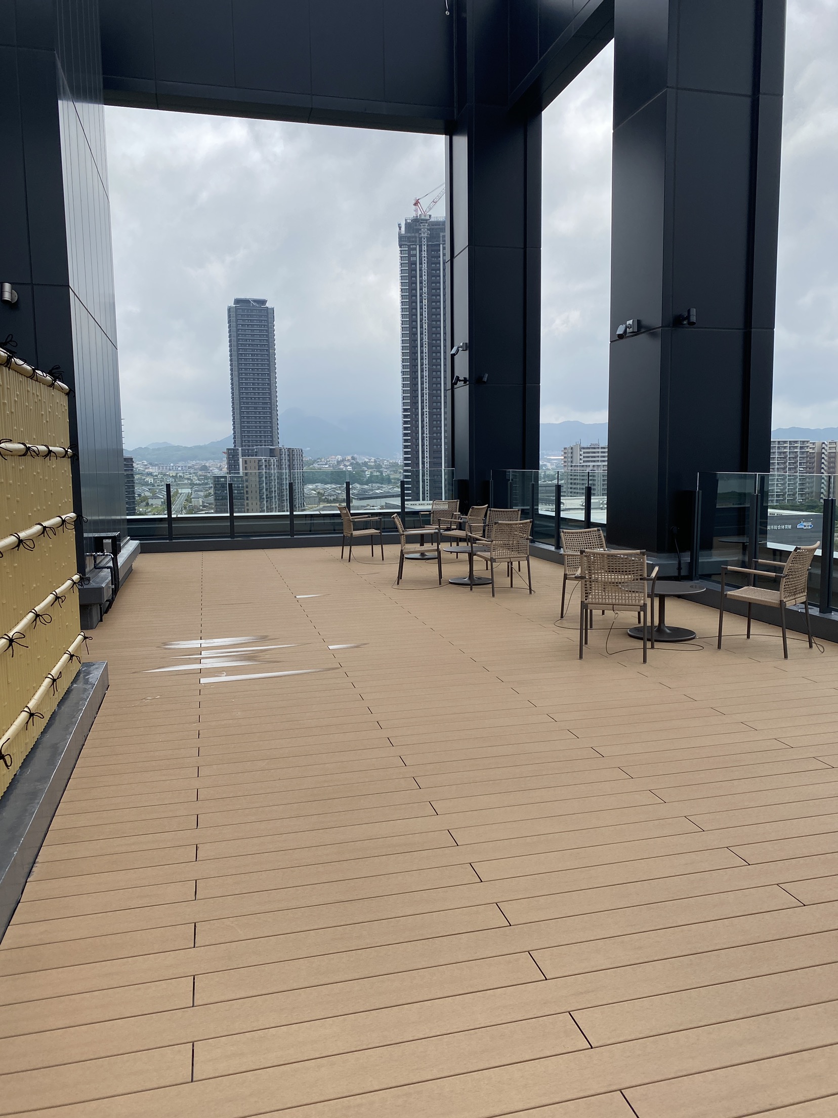 이곳은 온천과 같은 층에 위치한 야외 테라스예요. 전날 비가 많이 오고 바람이 많이 불어서 테이블과 의자가 많이 없는 거 같아요. 그래도 다음날은 비가 안 와서 다행 ㅎㅎ