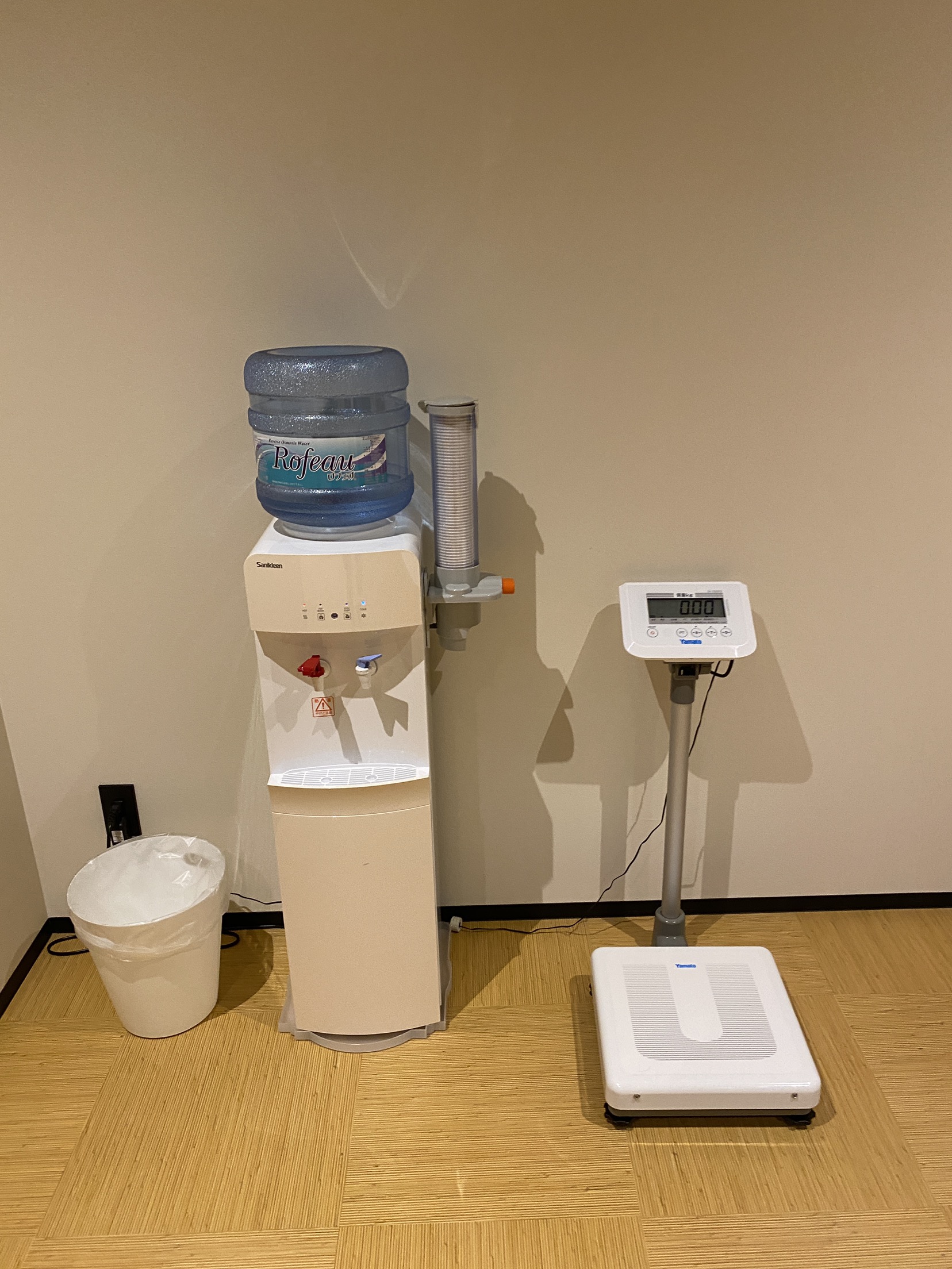 그리고 정수기와 체중계도 구비되어 있어요. 최근에 살이 쪄서 안 올라감.