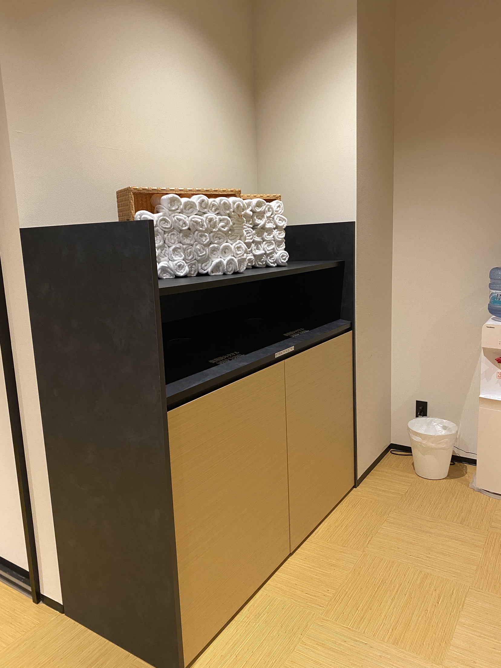 보통 온천 이용 시에는 객실에 구비된 수건을 가져오는 경우가 많은데 이곳은 수건이 비치되어 있습니다.