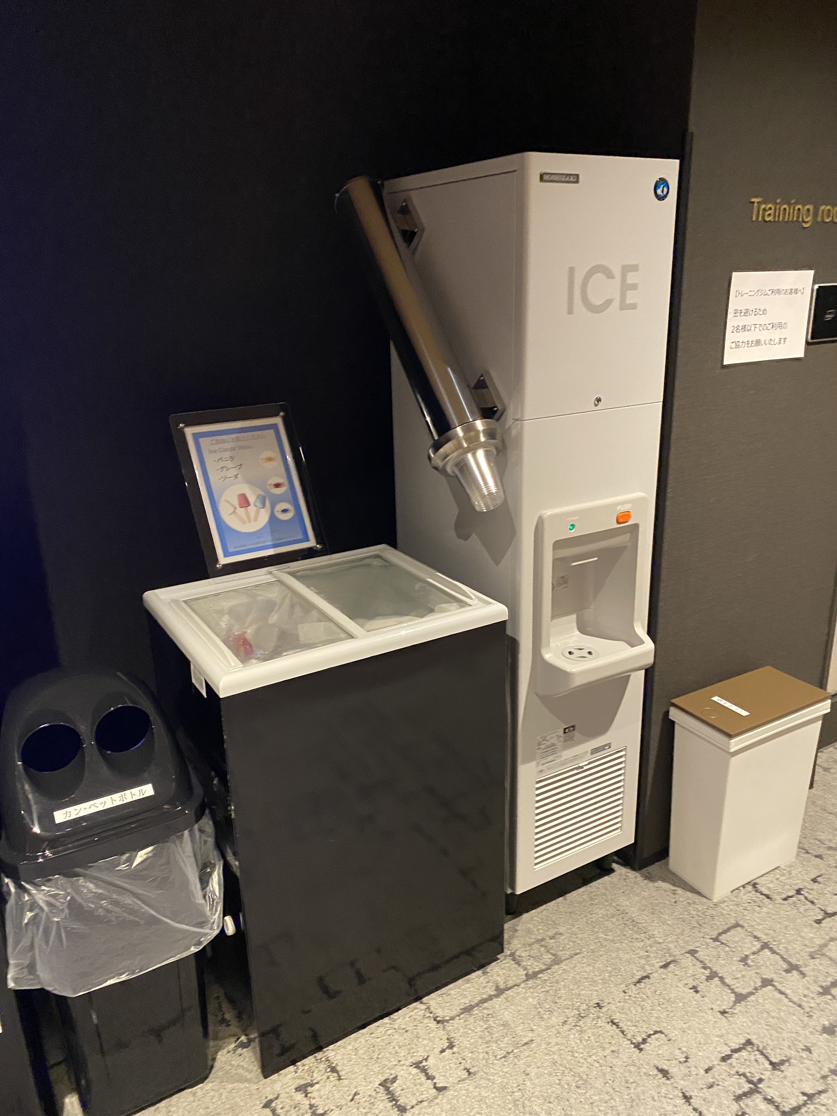 휴게실 옆에는 얼음기(?) 제빙기(?)가 있어요. 물은 안 나오고 자판기에서 음료를 뽑아서 얼음과 함께 먹는 용도였던 거 같아요.