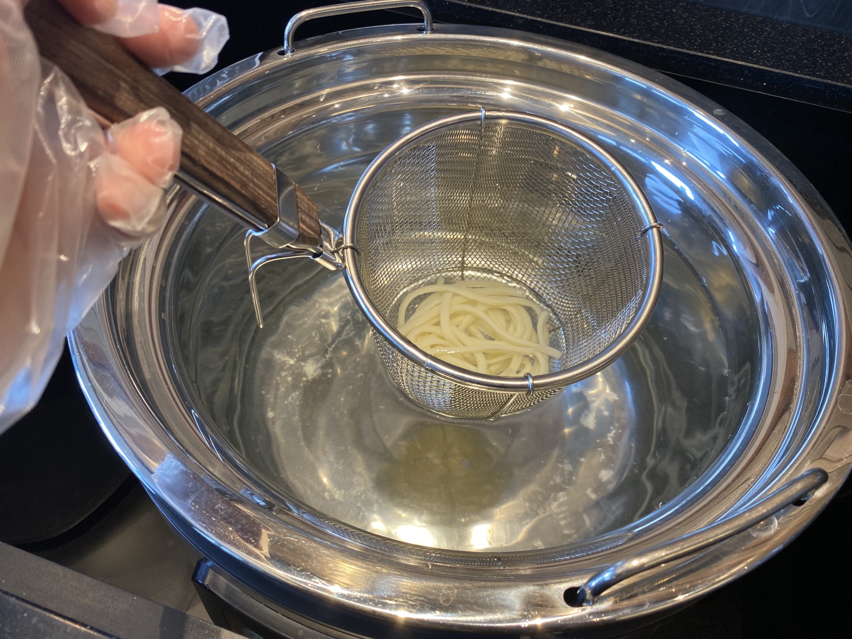 직접 물에 담아서 데친 다음에 고명을 직접 올려먹는 형식이에요.