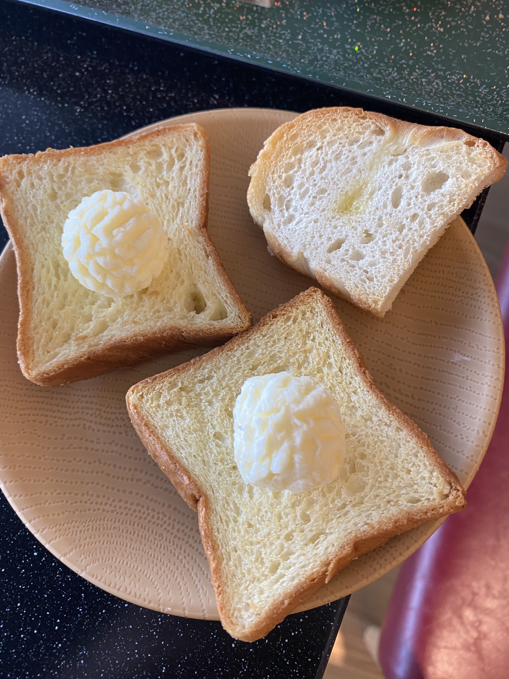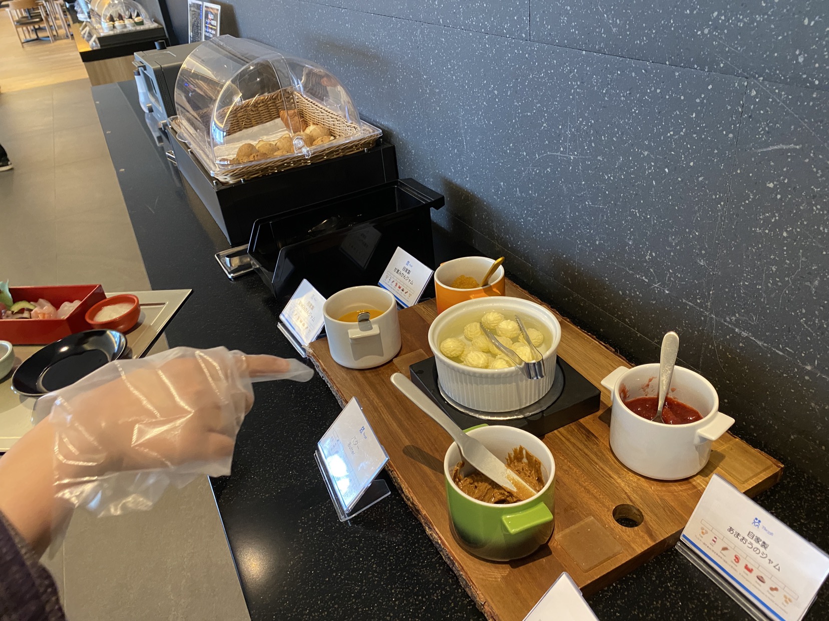 조식이니 당연히 빵도 있습니다. 특이한 건 버터나 잼 등을 1회용이 아닌 그릇에 담아 가는 형식이었어요.