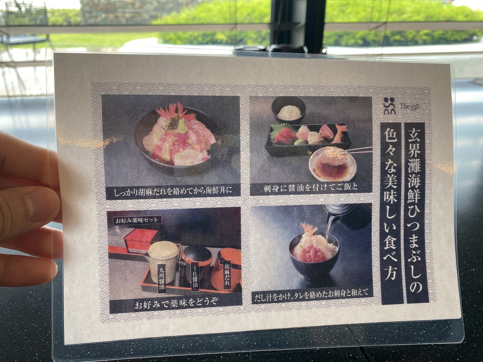 자리에는 사시미를 먹는 방법도 설명해 주는 안내판도 있습니다. 사시미를 그냥 간장에 찍어 먹어도 되고 밥 위에 올려먹어도 되고 육수를 넣어서 먹어도 됩니다.