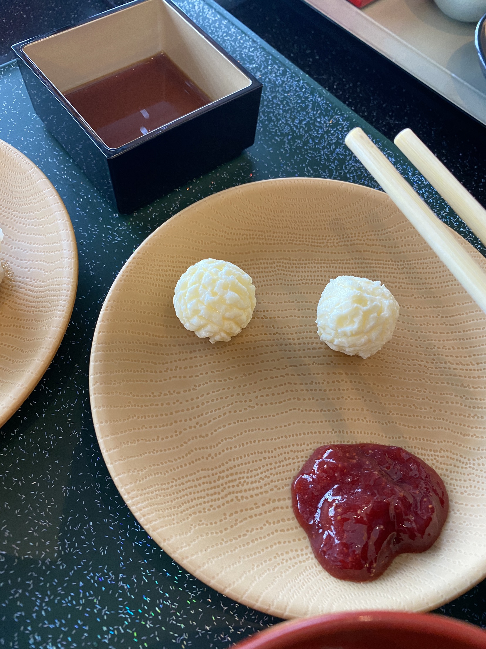 그리고 케첩처럼 보이는 저건 딸기잼인데 일단 공장에서 만들어지는 게 아닌 호텔에서 만드는 것 같았어요. 맛도 식감도 너무나 존맛탱! ㅎㅎㅎ