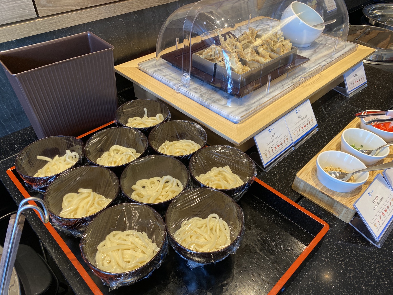 면 메뉴는 우동과 라면이 있습니다. 우동은 위에 올릴 수 있는 튀김 또한 준비되어 있어요.
