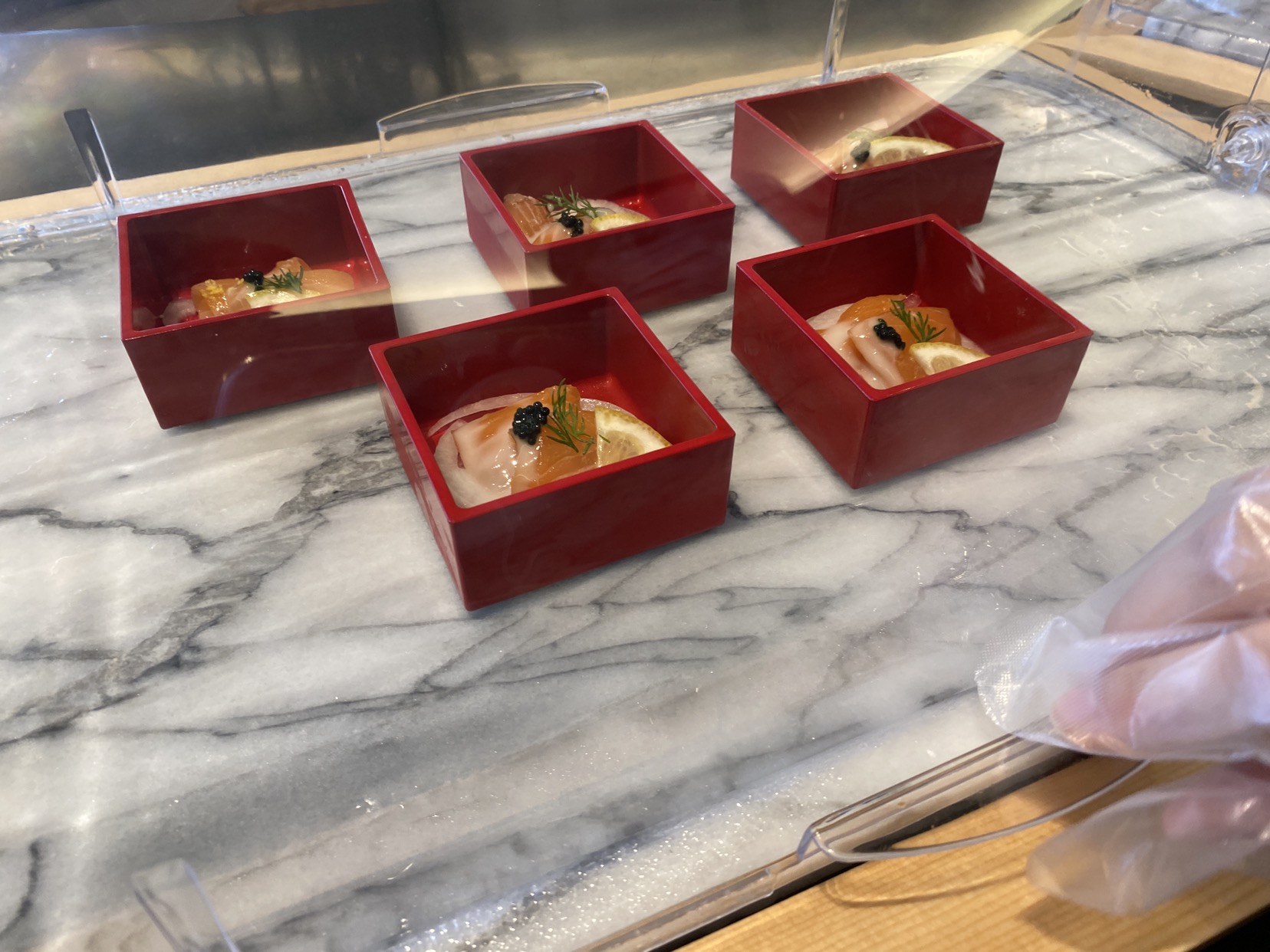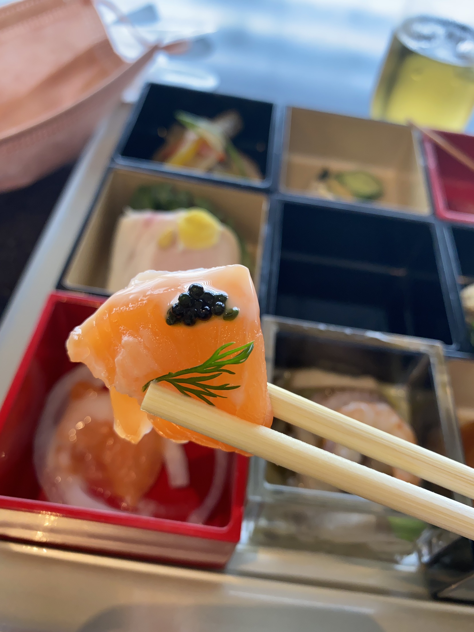 연어 위에 올려져 있는 건 캐비어일까요? 저는 뭐 금수저도 아니고 곧 제 힘으로 금수저가 될 사람이지만 아직 캐비어를 먹어본 적이 없기에.... ㅎㅎ 독특 향 맛이 나는 게 맛있었어요.