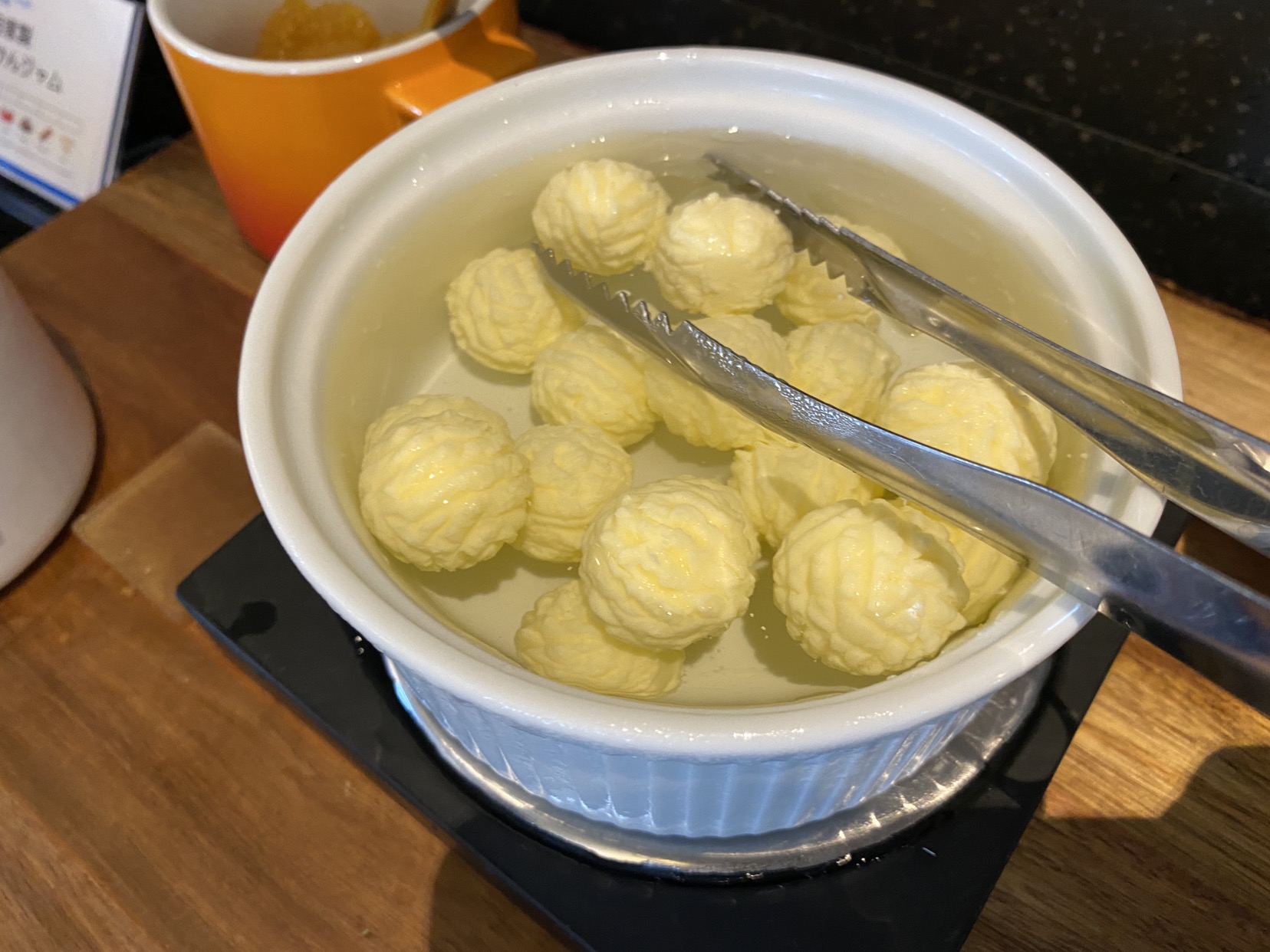 물에 담겨 있는 저 귀여운 건 버터예요 ㅎㅎㅎ 버터 이렇게 배치해두는 호텔 처음 봤어요 ㅋㅋ 귀염