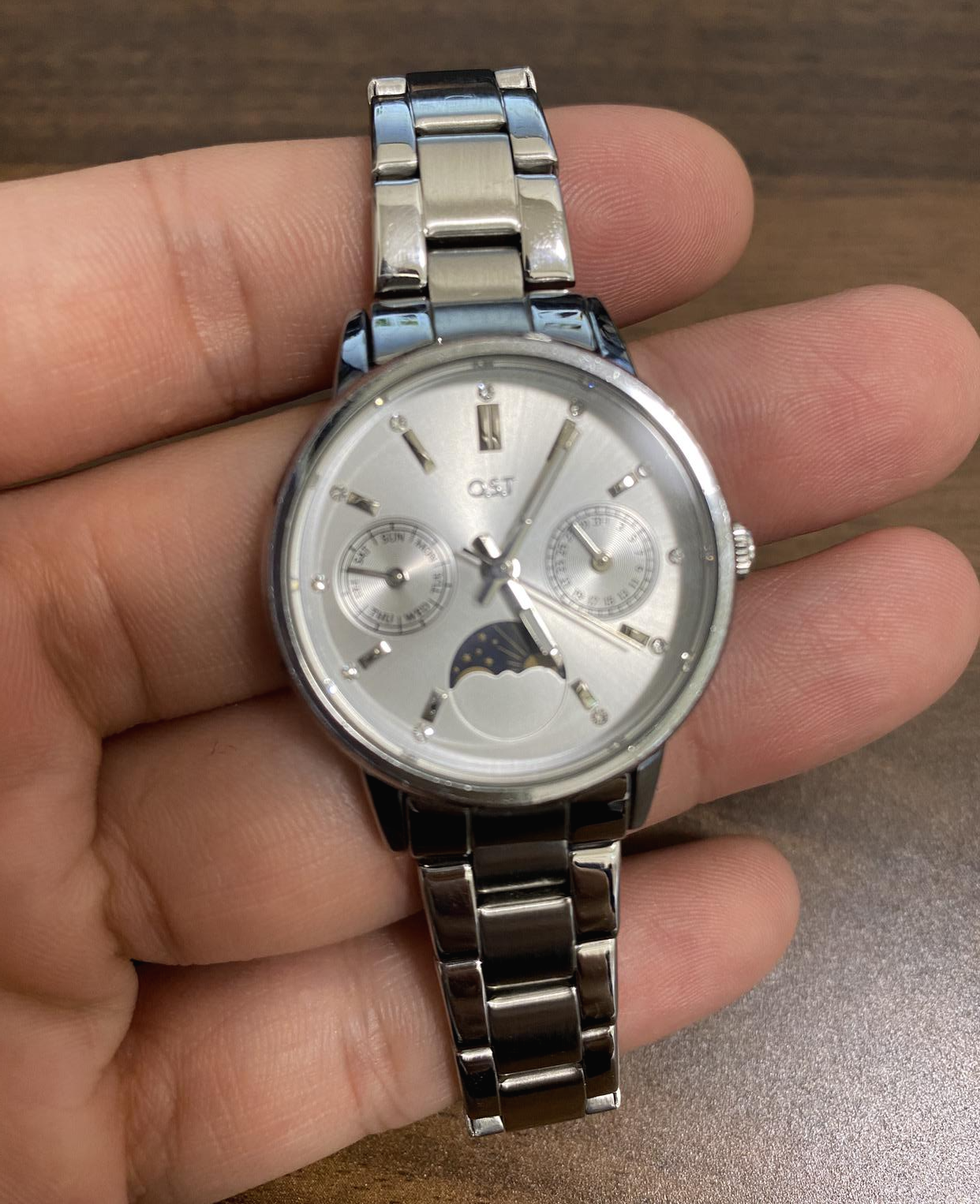 오늘은 문페이즈가 있는 손목시계인데 특이한게 요일과 날짜도 바늘로 표시가 되는 시계더라고요 ㅎㅎ 무게도 가벼워서 착용하기 너무나 편한 시계 같았어요.
