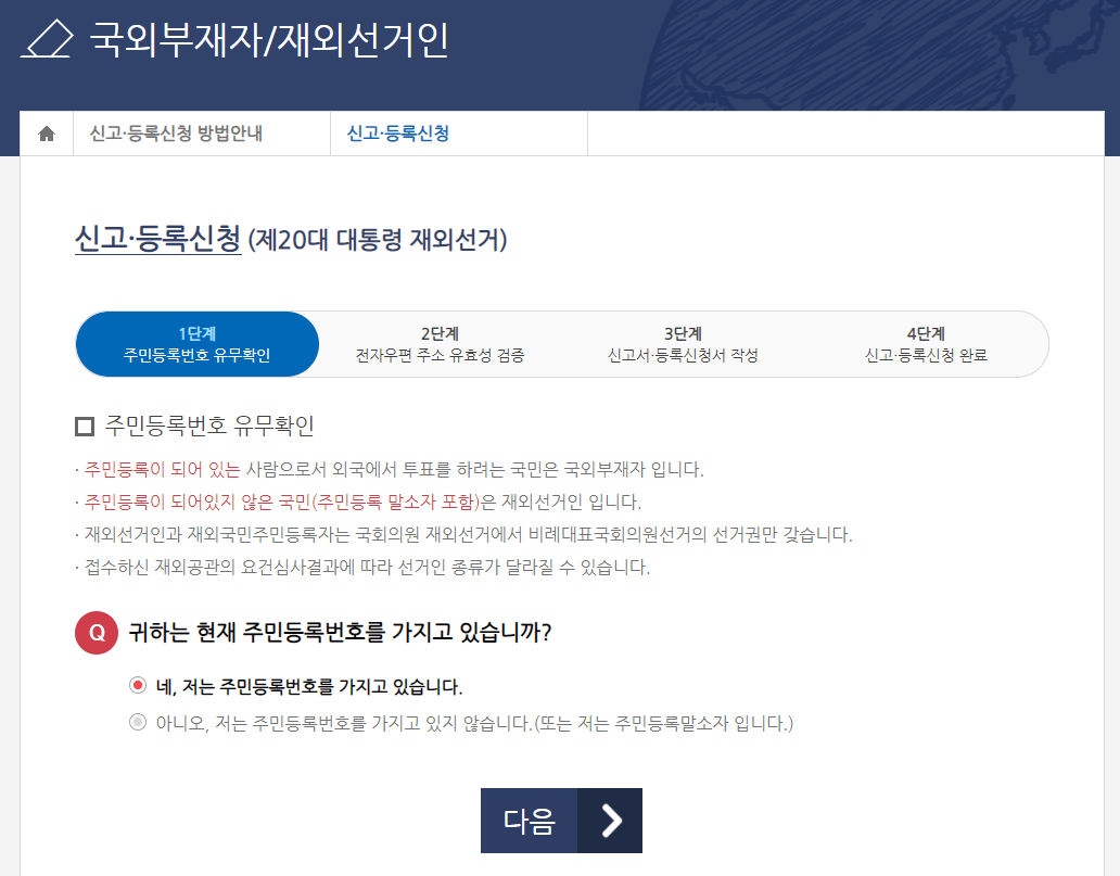 중앙선거관리위원회 재외선거 인터넷 신고·등록신청 시스템