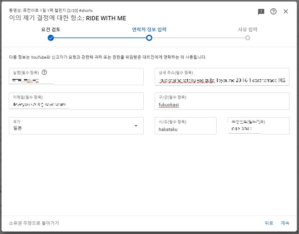 소유권을 주장을 취소해야 하는 이유에는 지난번 블로에서 답변받은 내용을 그대로 입력했습니다. 이 방법이 통할지 모르겠지만 현재 있지도 않은 음원으로 저작권 침해 신고를 하고 있으니 같은 내용으로 해보도록 하겠습니다.