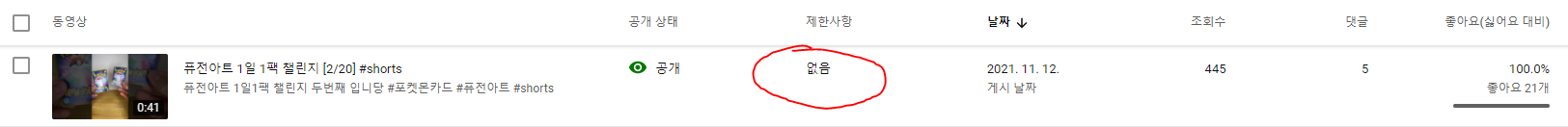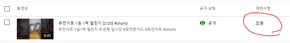 위 이미지의 영상이 지난번 제가 저작권 침해 신고를 당했던 해당 영상인데 어느새 제한사항이 없음으로 되어 있음을 최근에 확인하였습니다.
