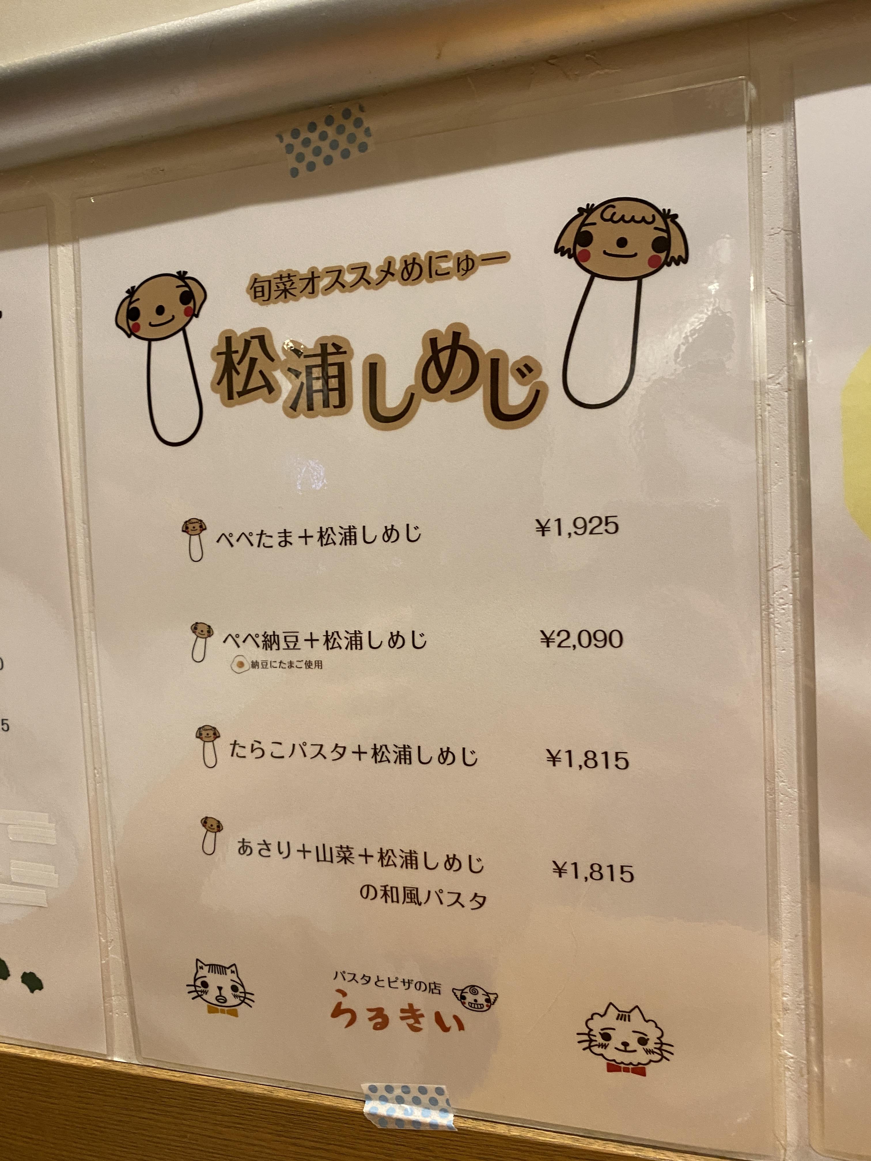 라루키이는 재료를 기준으로 구분되어 있어요. 왼쪽은 그림으로도 알 수 있듯이 송이버섯이에요.
