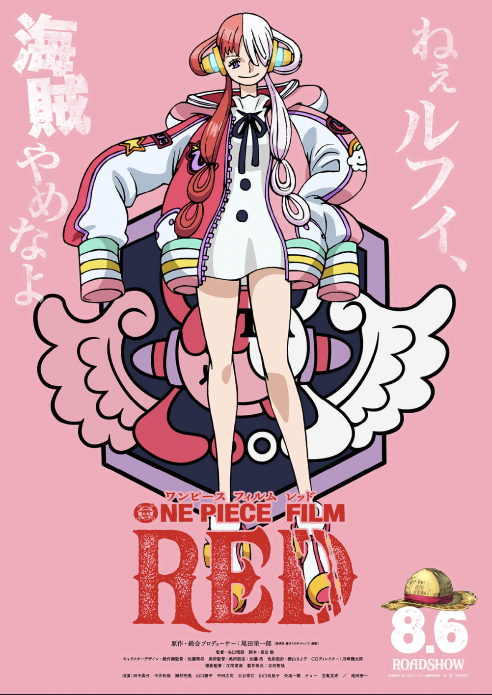 실제로 전투장면은 원피스 영화 특성상 후반부에 나오지만 이번 영화는 전투신보다는 노래가 중심적인 느낌이 들었습니다. 이번 극장판의 주인공인 '우타'가 메인 스토리로 노래로 시작해서 노래로 끝나요. (우타는 일본어로 노래라는 뜻)