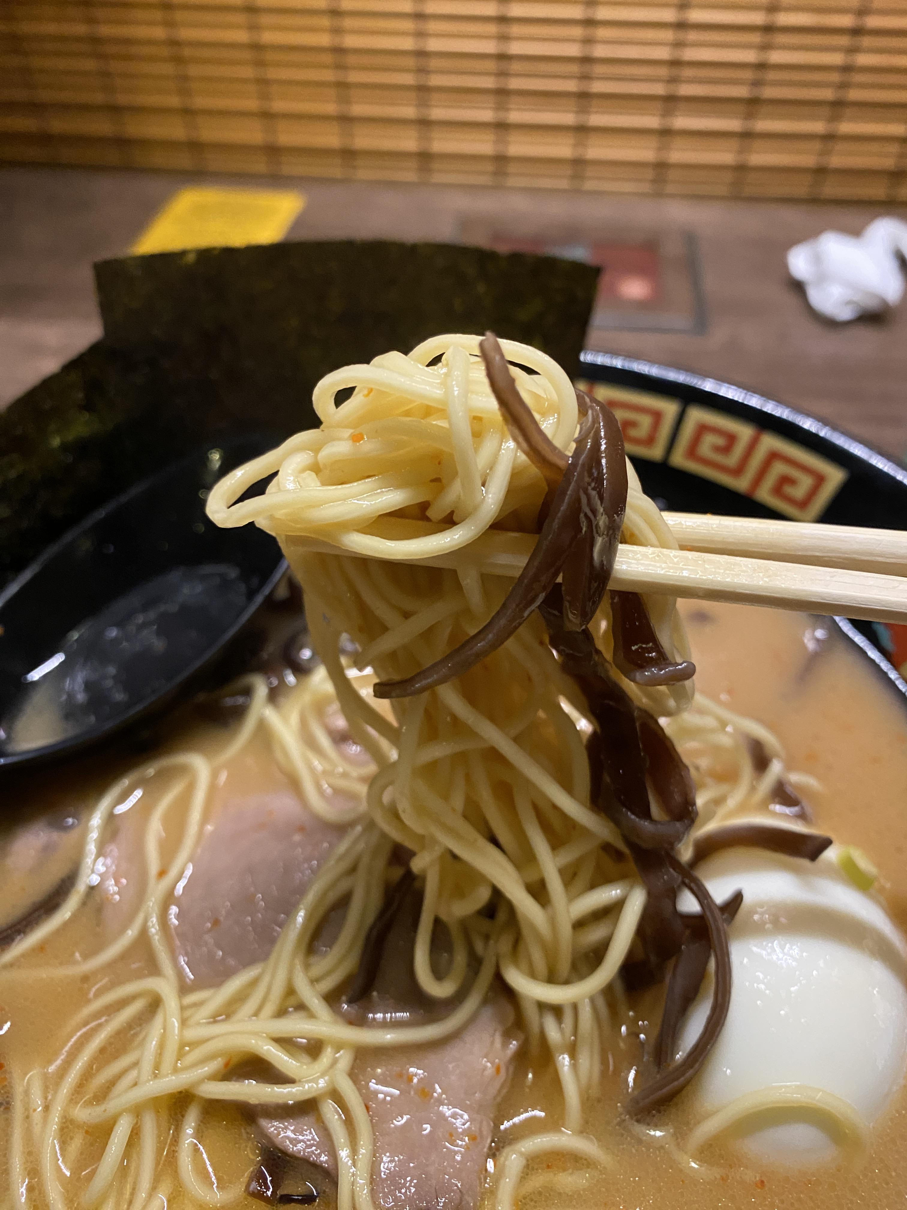 김이 생각보다 돈코츠 국물과 잘 어울리고, 느끼해진 목을 개운하게 해주는 느낌이 있어요.