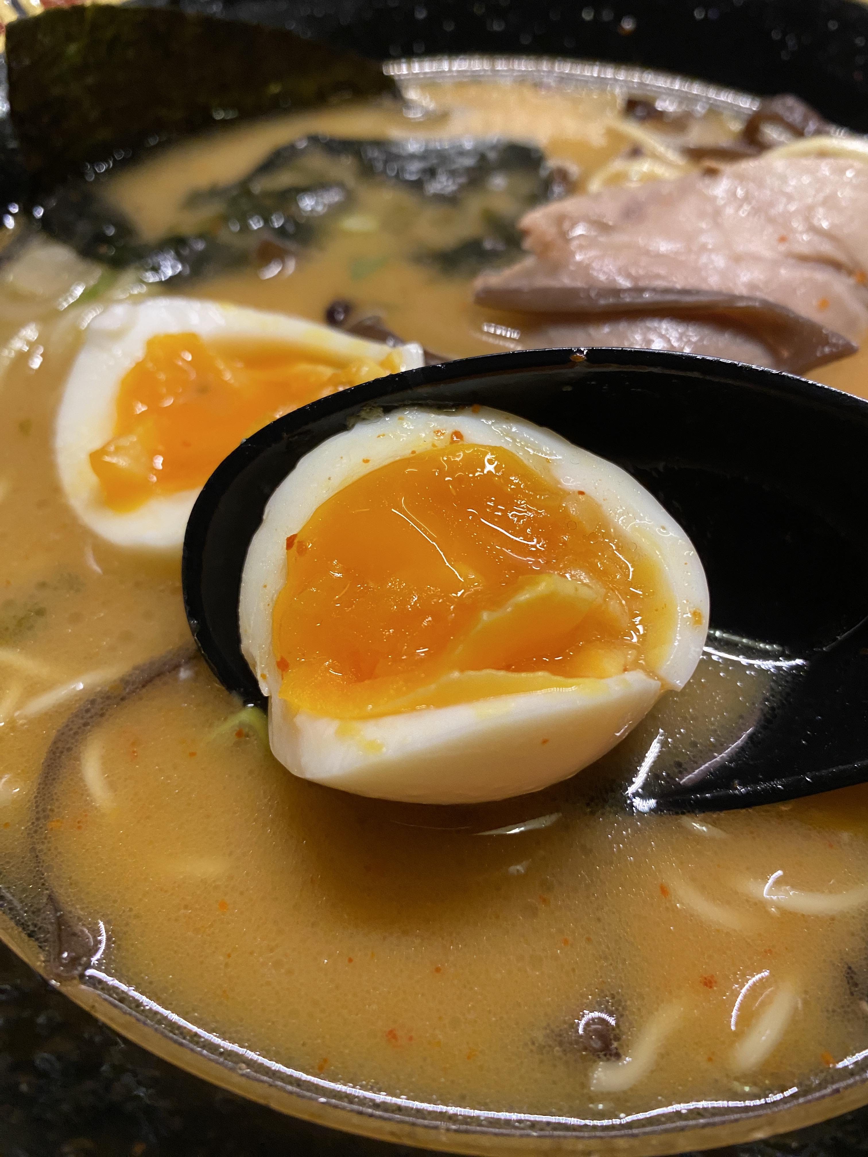 그리고 무엇보다 중요한 반숙 계란! 이 익힘 정도는 진짜로 딱 적절해요. 너무 덜 익어서 국물과 잘 섞이지도 않고, 너무 익어서 먹기 뻑뻑하지도 않습니다.
