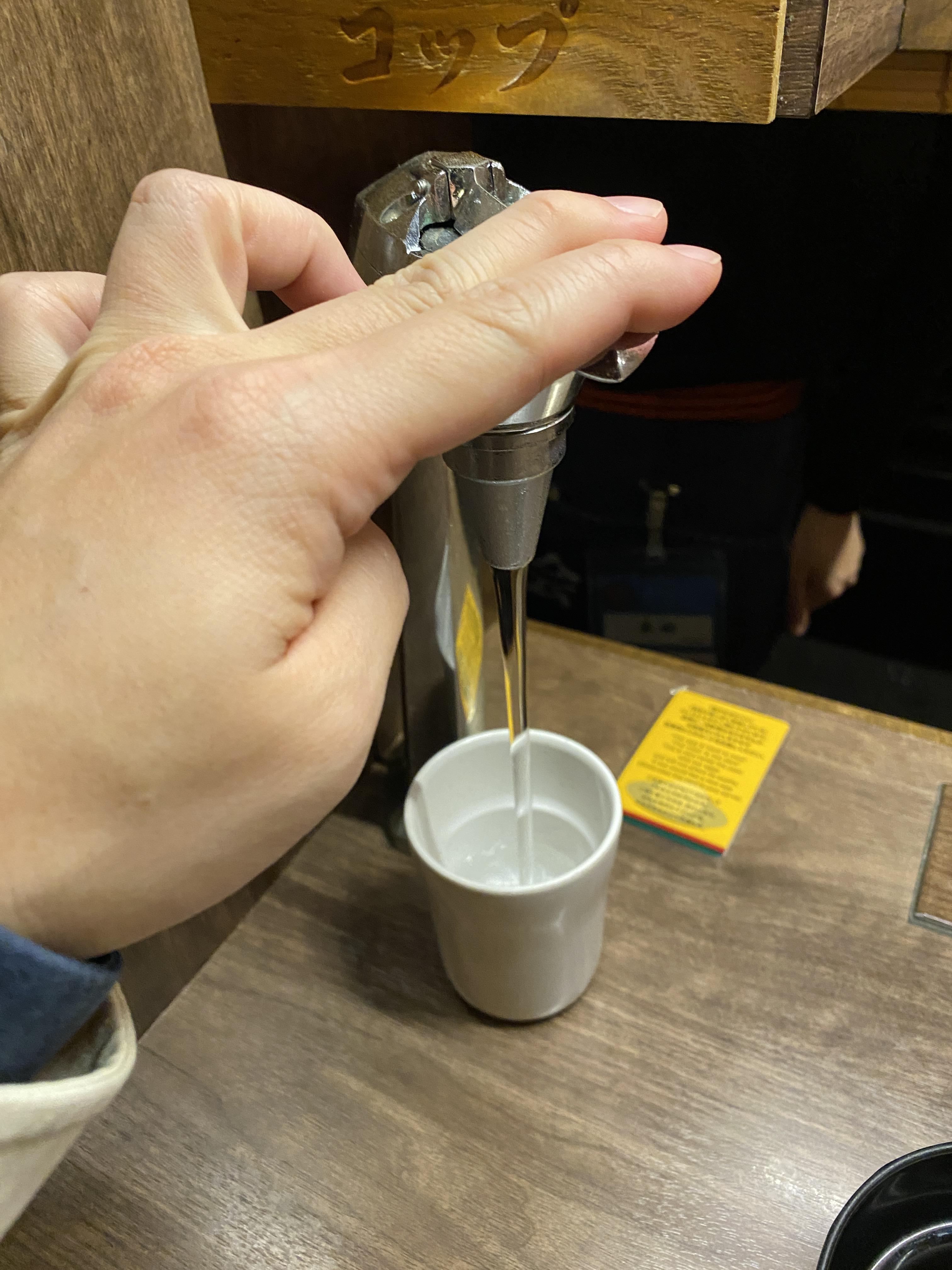 자리에 앉으면 보통 개인석이 기본이에요. 각 개인 자리마다 물이 나오는 수도가 있고 컵과 젓가락 등이 구비되어 있어요. 물은 찬물이니 혹시 따뜻한 물이 필요하면 점원에게 문의하시면 됩니다.