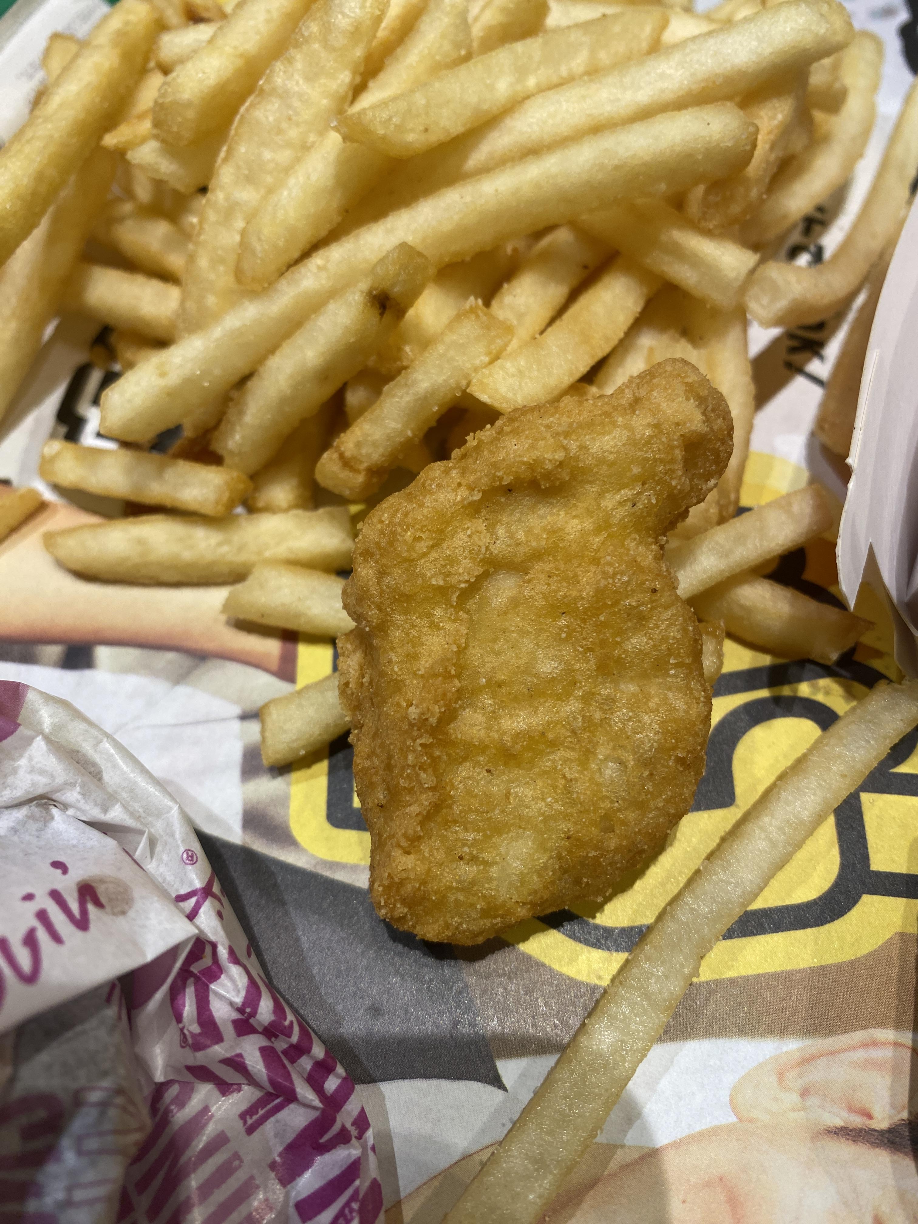 저는 데리야키버거를, 여자친구는 계란치즈버거(?)를 주문했어요. 한국 맥도날드에선 어떤 메뉴가 있는지 궁금하네요! 그리고 특별히 맥너겟도 시켰는데, 한반도 모양이어서 뿌듯한 마음에 사진 한 장 찍어봤습니다. 한국인으로서 느끼는 자부심이랄까요? ㅎㅎ