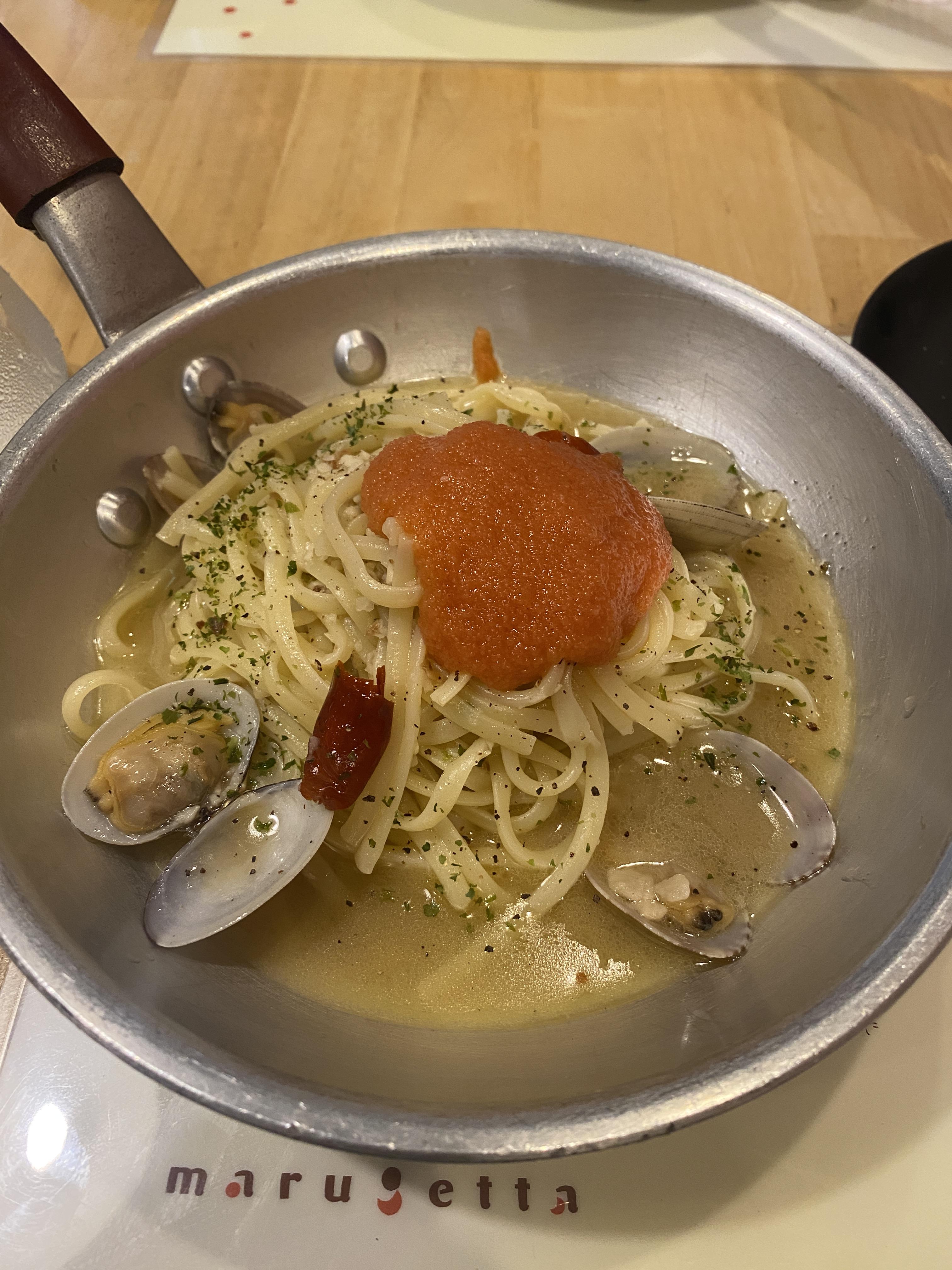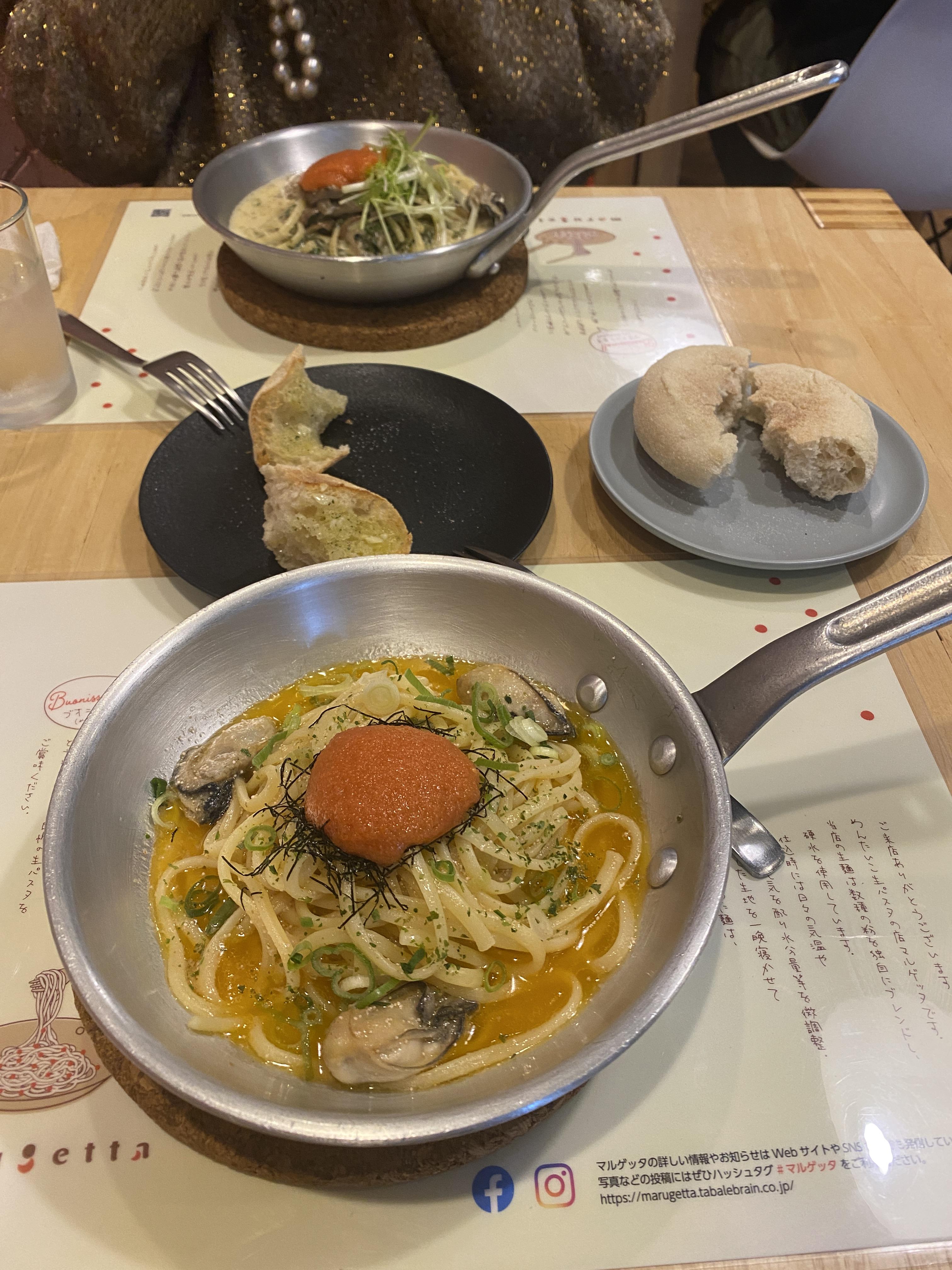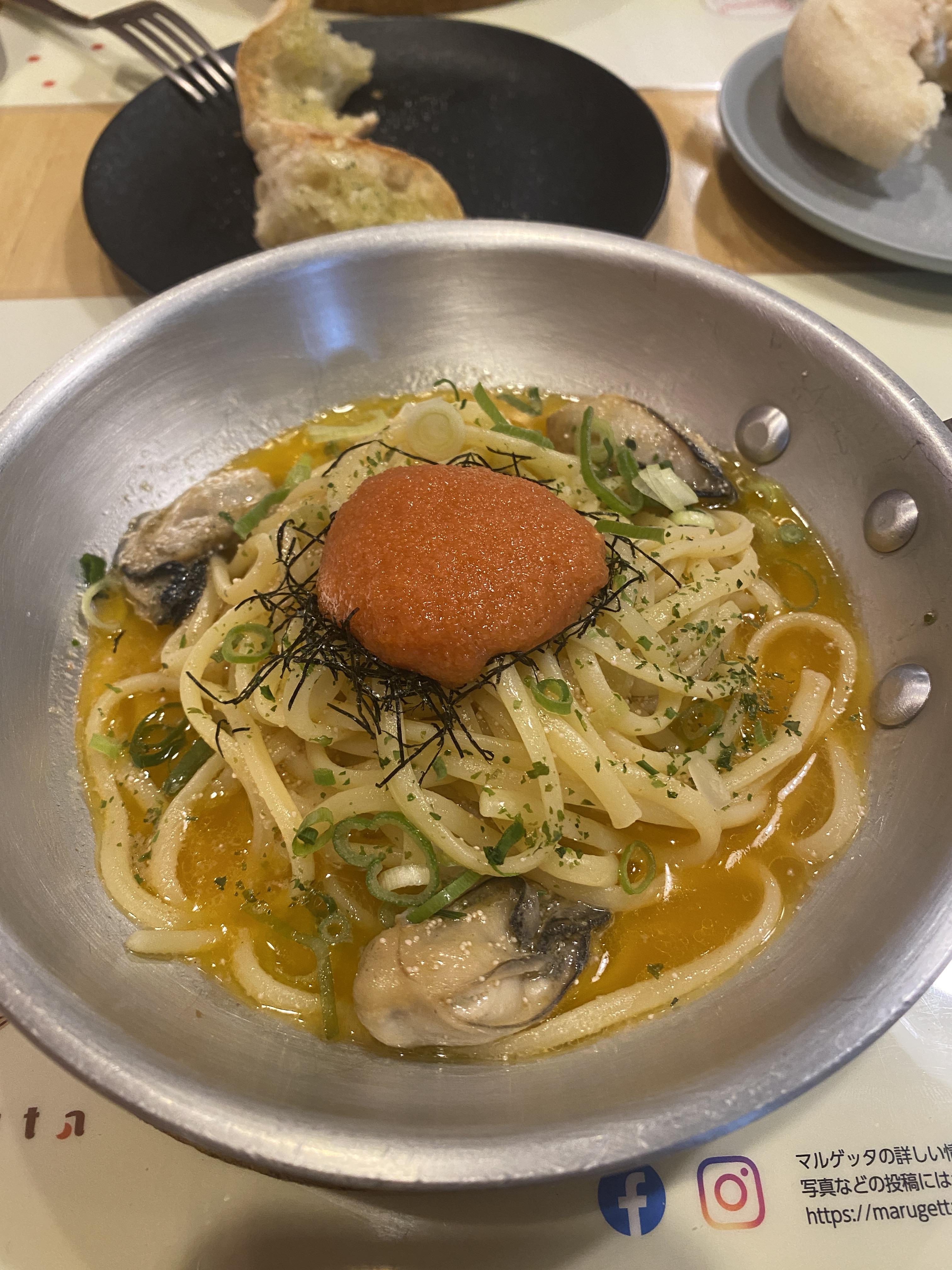 여기서는 면을 직접 뽑아 만든 생 파스타를 맛볼 수 있고, 특히 **명란(멘타이코)**이 들어간 요리가 정말 맛있답니다!