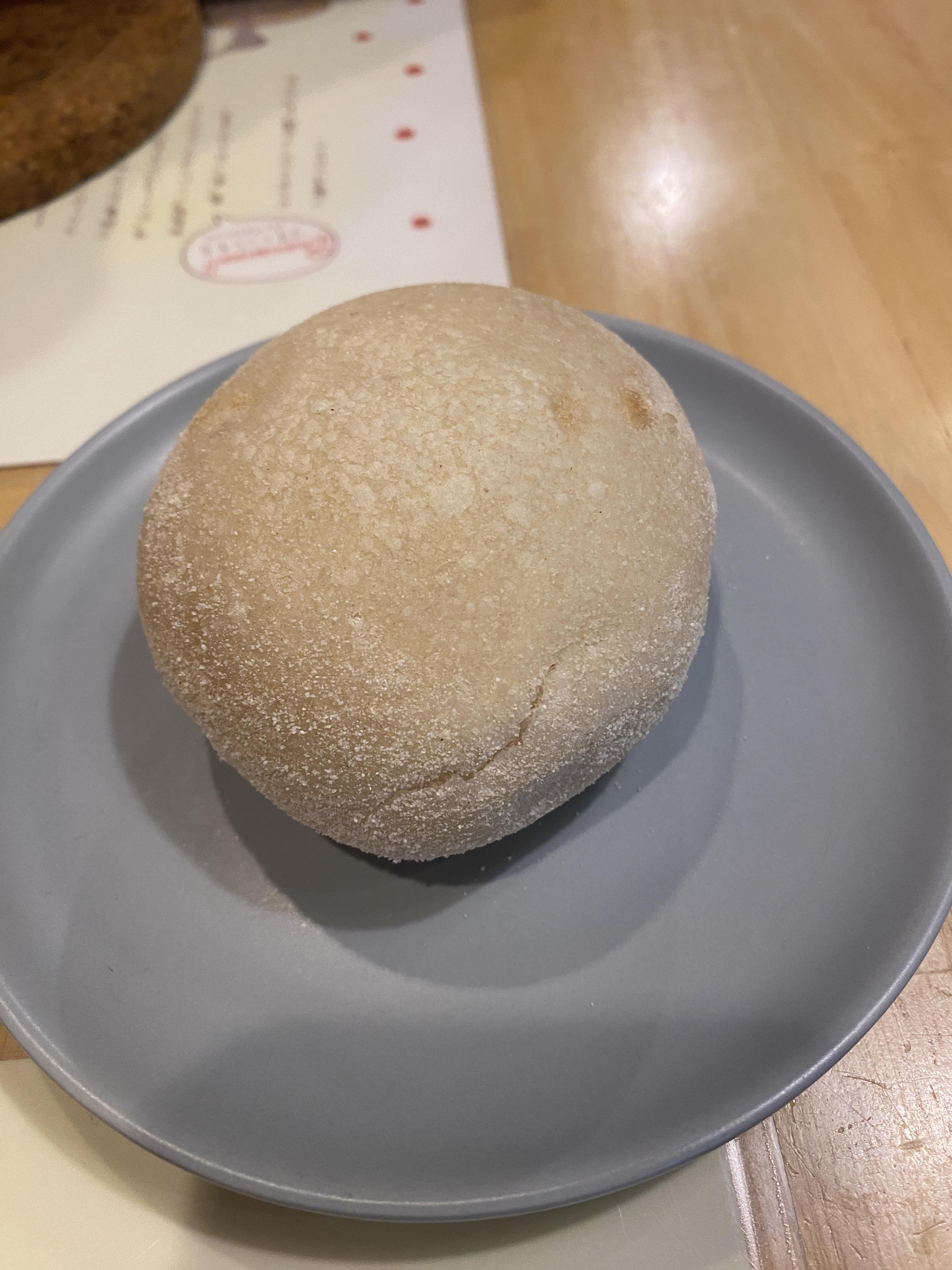 여기서 빵 메뉴는 두 종류인데요. 왼쪽은 마늘소스가 발린 구운 빵, 오른쪽은 기본 빵이에요.