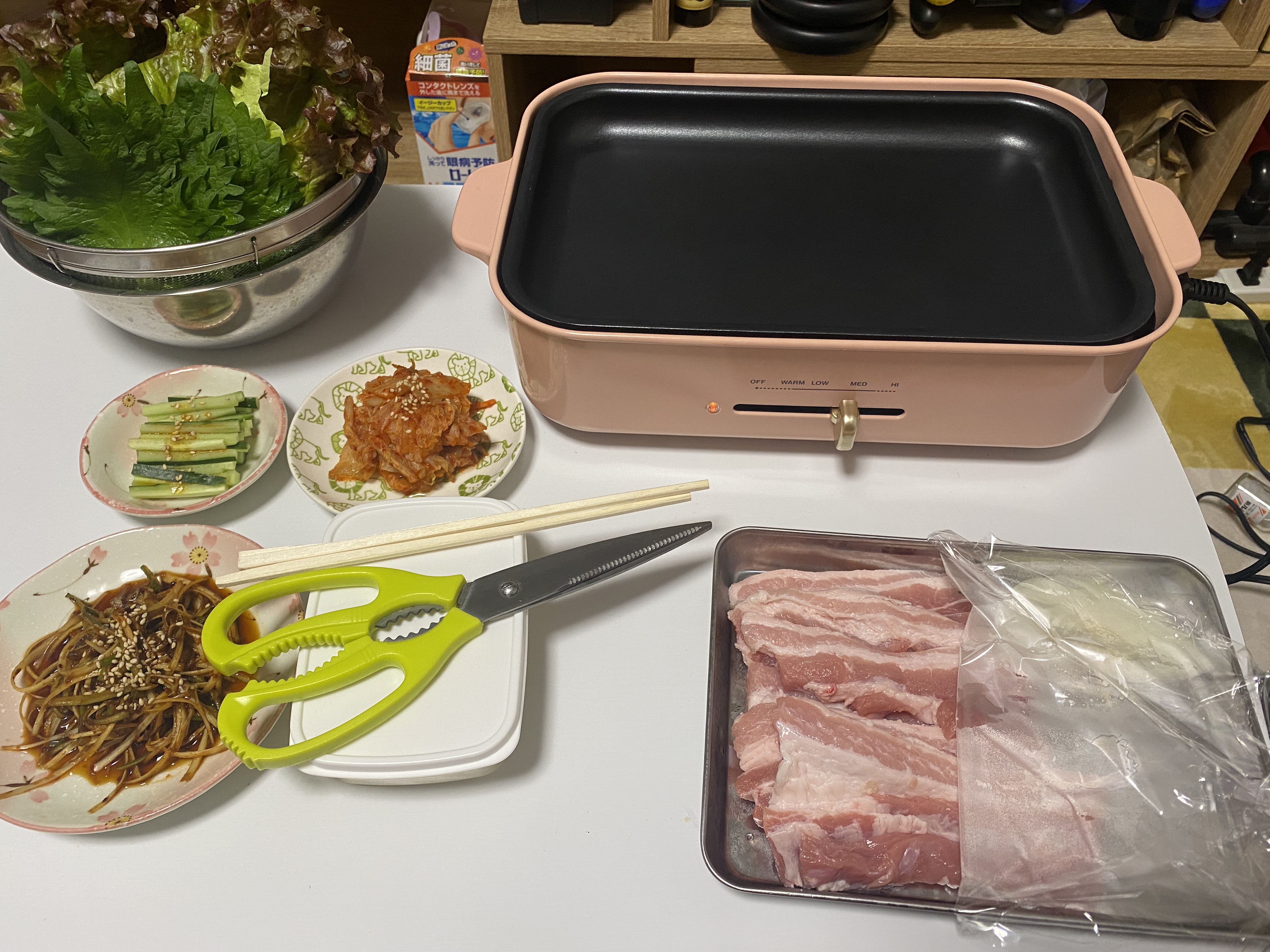 한국에서 자주 먹던 불판은 일본에서도 구할 순 있지만 정리가 번거로워서 핫플레이트에다가 먹기로 했어요