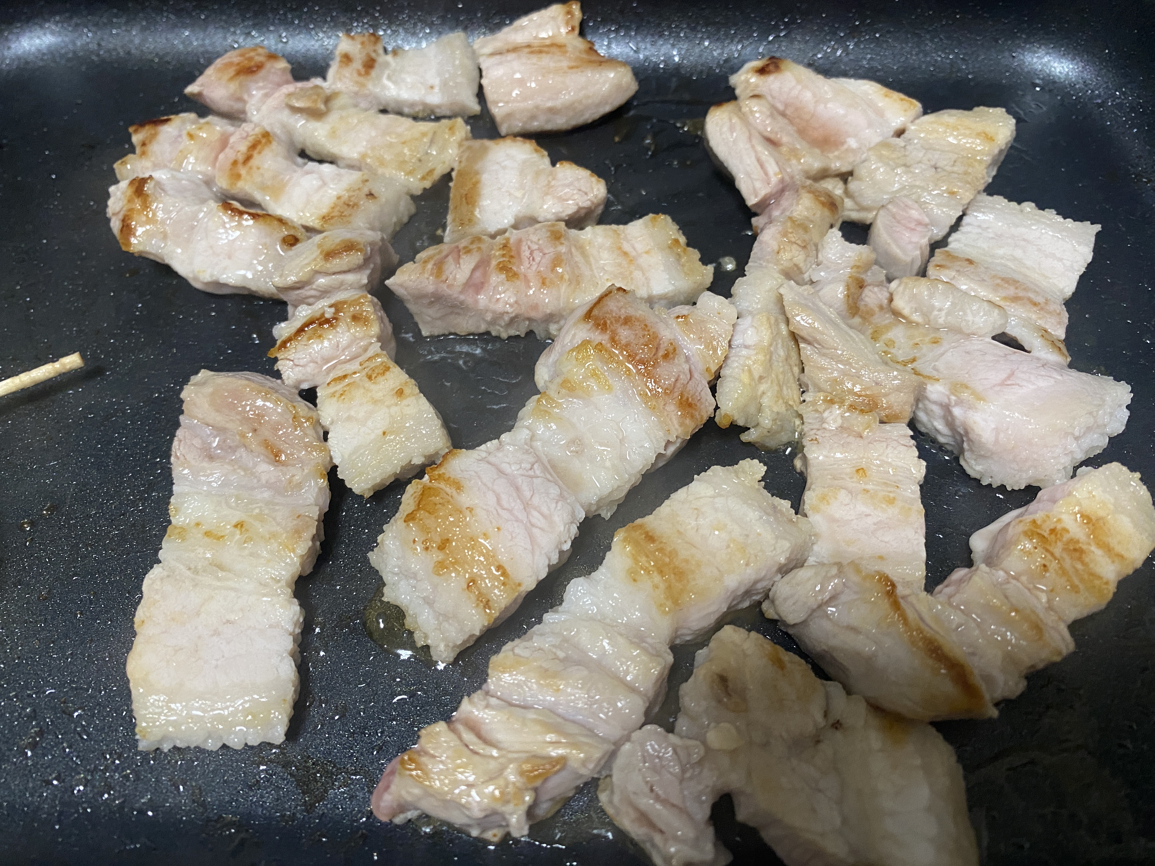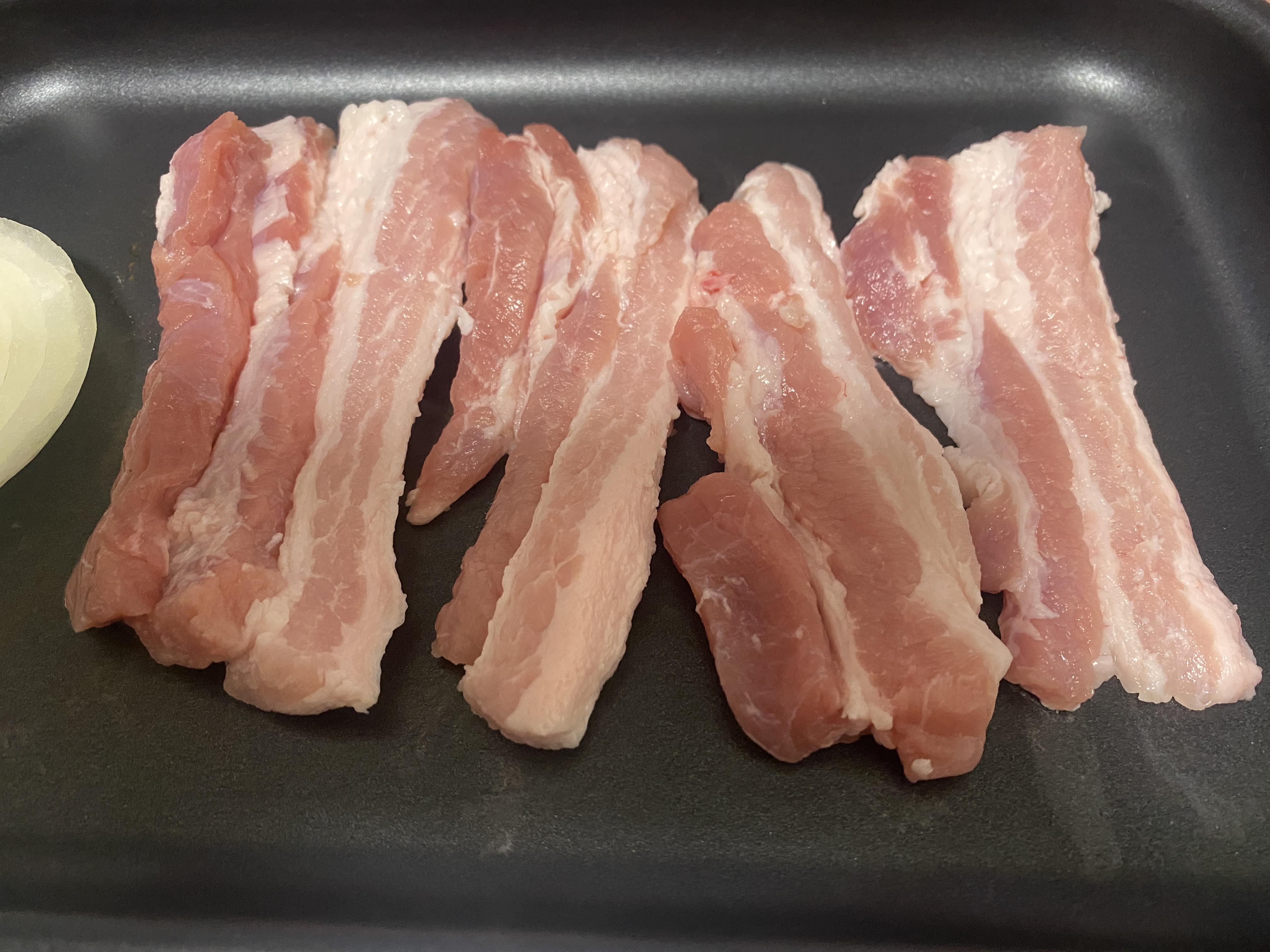 고기는 일본 맥스벨류라는 슈퍼에서 사 왔는데 삼겹살이라고 쓰여있지만 손질 방법이 조금 다른 것 같아요 ㅎㅎ